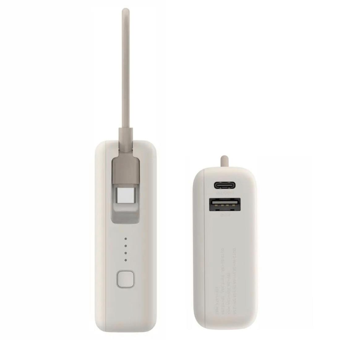 • Este powerbank es tan pequeño que puedes llevarlo a cualquier lugar sin esfuerzo. Equipado con un cable USB-C integrado, es extremadamente cómodo y portátil. Este cable no solo te permite cargar tus smartphones convencionales y la propia batería externa, sino que también se transforma en un cordón, facilitando su transporte. Viaja ligero, sin la necesidad de cables adicionales.