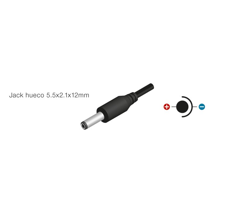 - Conec. salida: Jack hueco 5,5×2,1×12,0mm