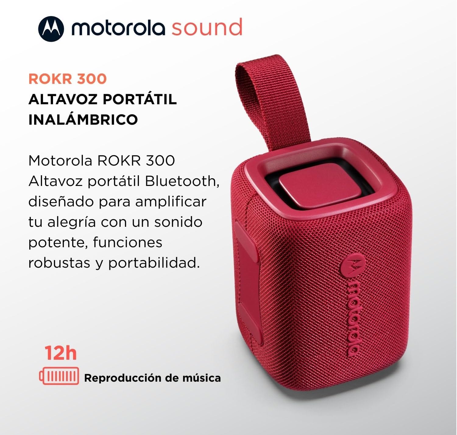 • Altavoz Bluetooth compacto y portátil: El Motorola ROKR 300 es un altavoz inalámbrico portátil que ofrece un sonido potente, bajos profundos y voces claras gracias a su altavoz de 7W y dos radiadores pasivos.