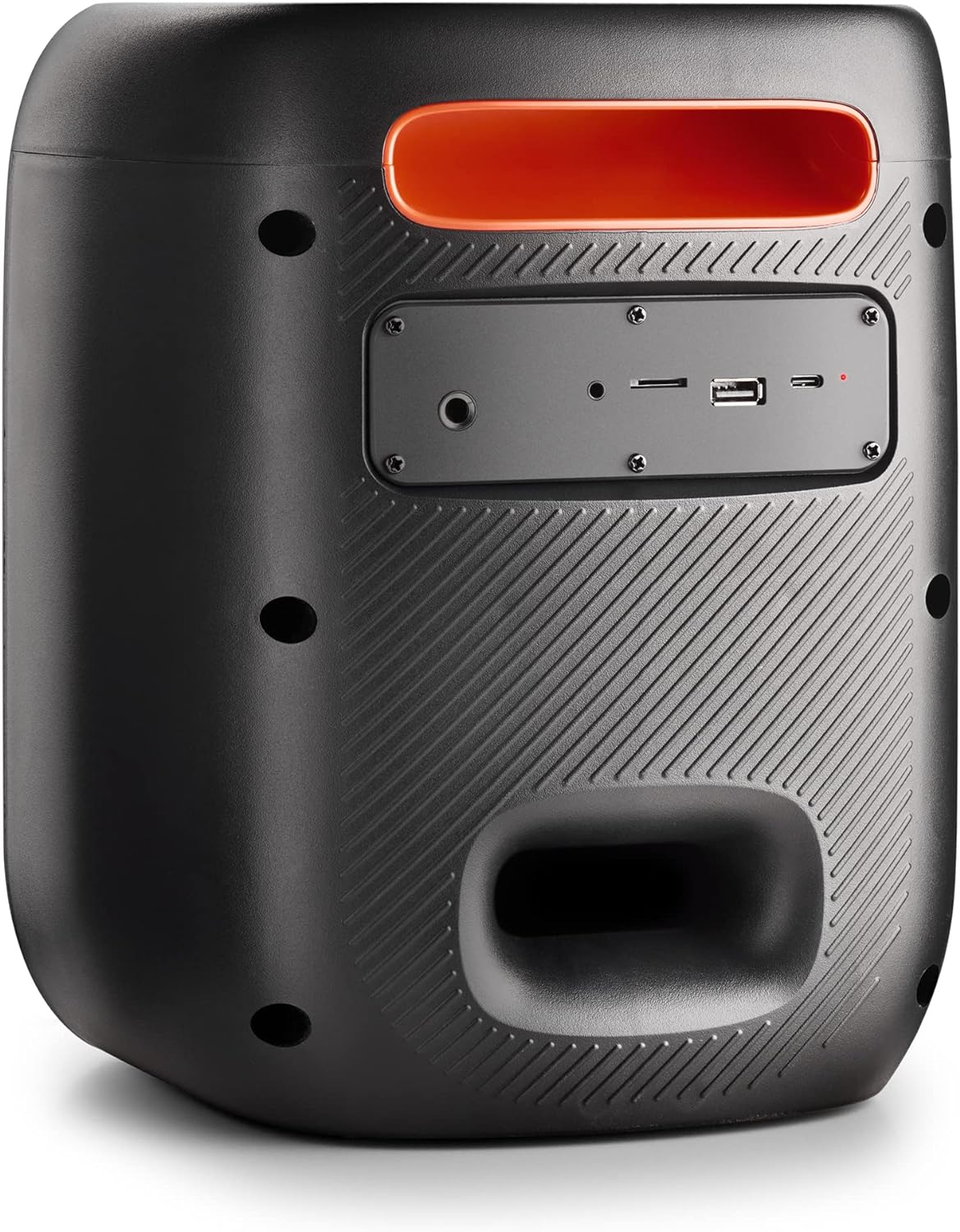 - Altavoz portátil compatible con tecnología Bluetooth 5.0, entrada de audio USB/TF y Entrada Auxiliar. Su entrada de micrófono permite conectar un micro para cantar o impartir charlas.