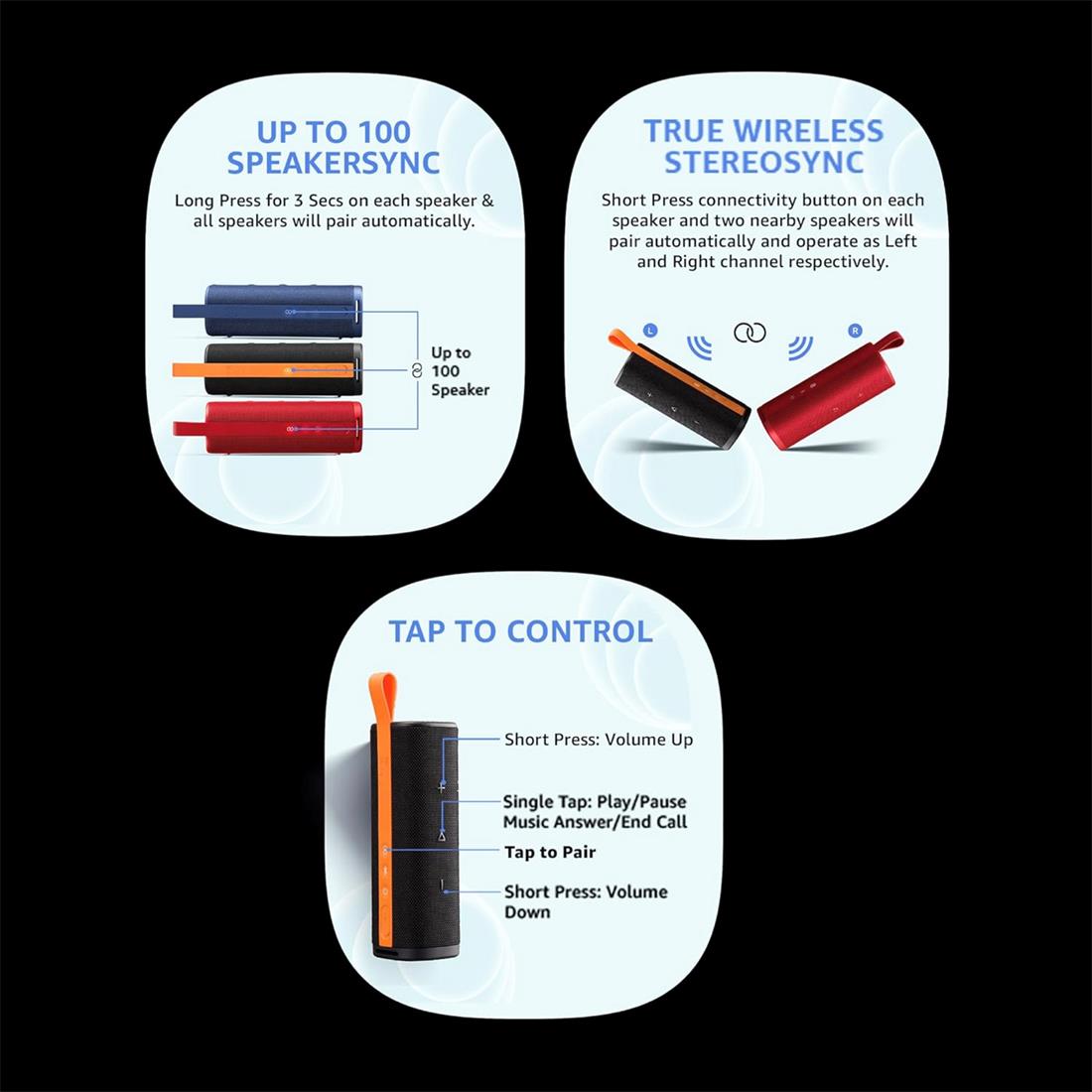 • Con la certificación IP67, estos altavoces están protegidos del agua y el polvo, permitiendo su uso sin preocupaciones en la piscina, playa o montaña. Su malla frontal extragrande y diseño compacto garantizan portabilidad sin sacrificar el impacto sonoro.