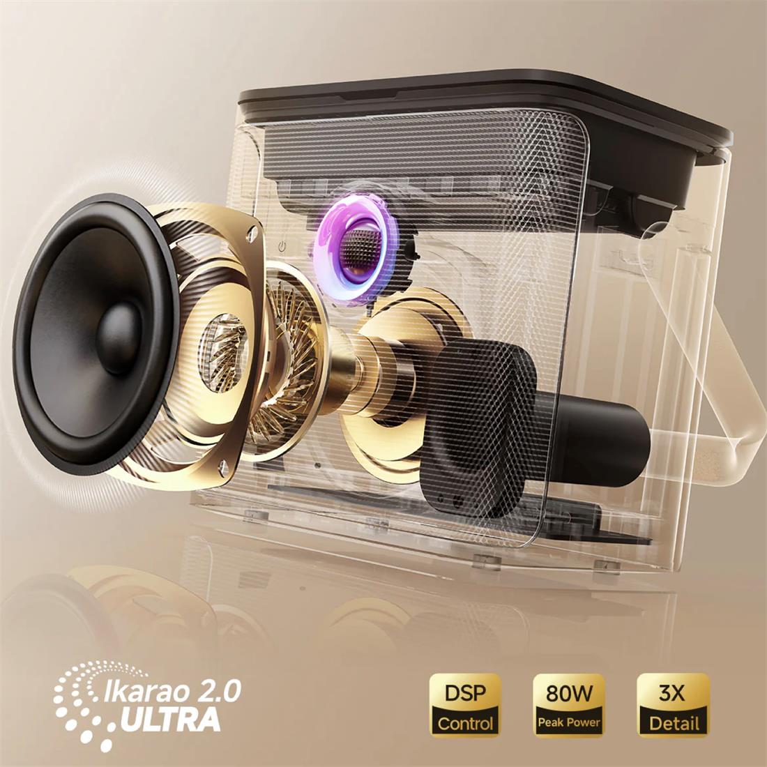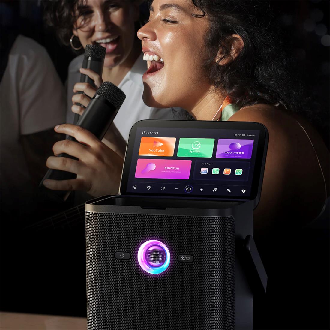 - La máquina de karaoke Ikarao Shell S3 para adultos incluye una pantalla incorporada y un sistema de karaoke que transforma cualquier canción en una pista de acompañamiento al instante, gracias a su innovador removedor de voces AI. No más búsquedas tediosas de versiones karaoke; con solo un toque, ¡estás listo para cantar! Equipado con corrección de tono Autotune y efectos de eco, tu voz brillará como la de una estrella. Su altavoz de 80W ofrece un sonido poderoso y envolvente, y con su mango plegable y batería de 7 horas, podrás llevar la diversión del karaoke a donde quieras.