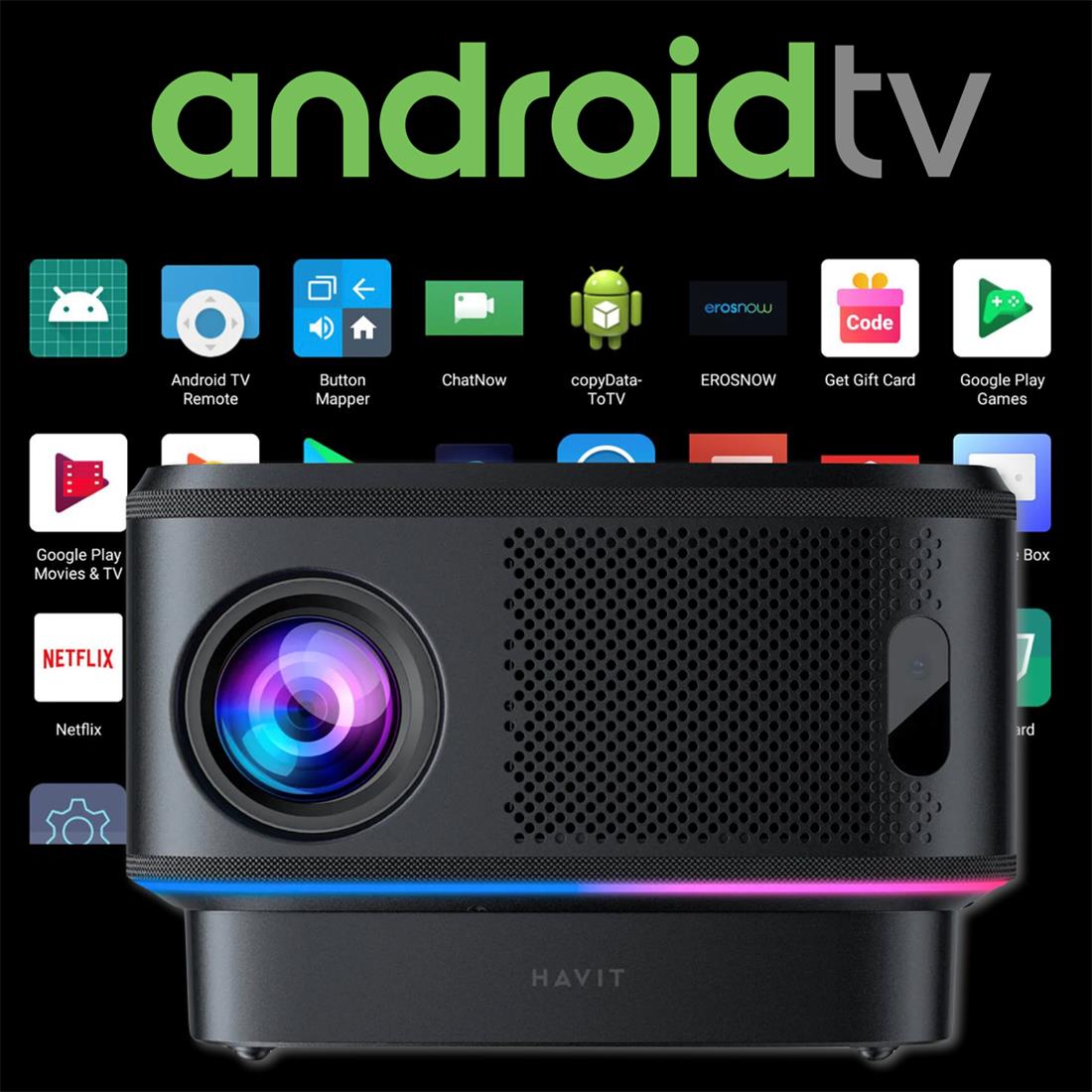 Proyector FULL HD Havit PJ300 PRO 550 Lúmenes, Android TV y Wifi 6