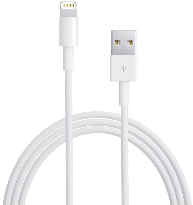 • Cable USB 2.0 conecta tu iPhone, iPad o iPod con conector Lightning al puerto USB del ordenador para sincronizarlo o cargarlo, o al Adaptador de corriente USB de Apple para cargarlo con comodidad en una toma de pared.