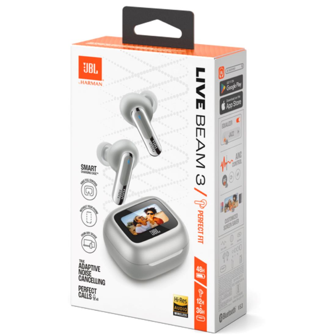 - Los auriculares JBL LIVE BEAM 3 True Wireless ofrecen un sonido personalizado y de alta resolución sin necesidad de mirar el teléfono. Con la Smart Charging Case™, puedes controlar todas las funciones de los auriculares sin abrir la aplicación JBL en tu dispositivo. Además, la tecnología True Adaptive Noise Cancelling elimina las distracciones, mientras que el sonido JBL Spatial crea una experiencia envolvente. Con una duración de batería de hasta 48 horas y carga inalámbrica, estos auriculares son ideales para