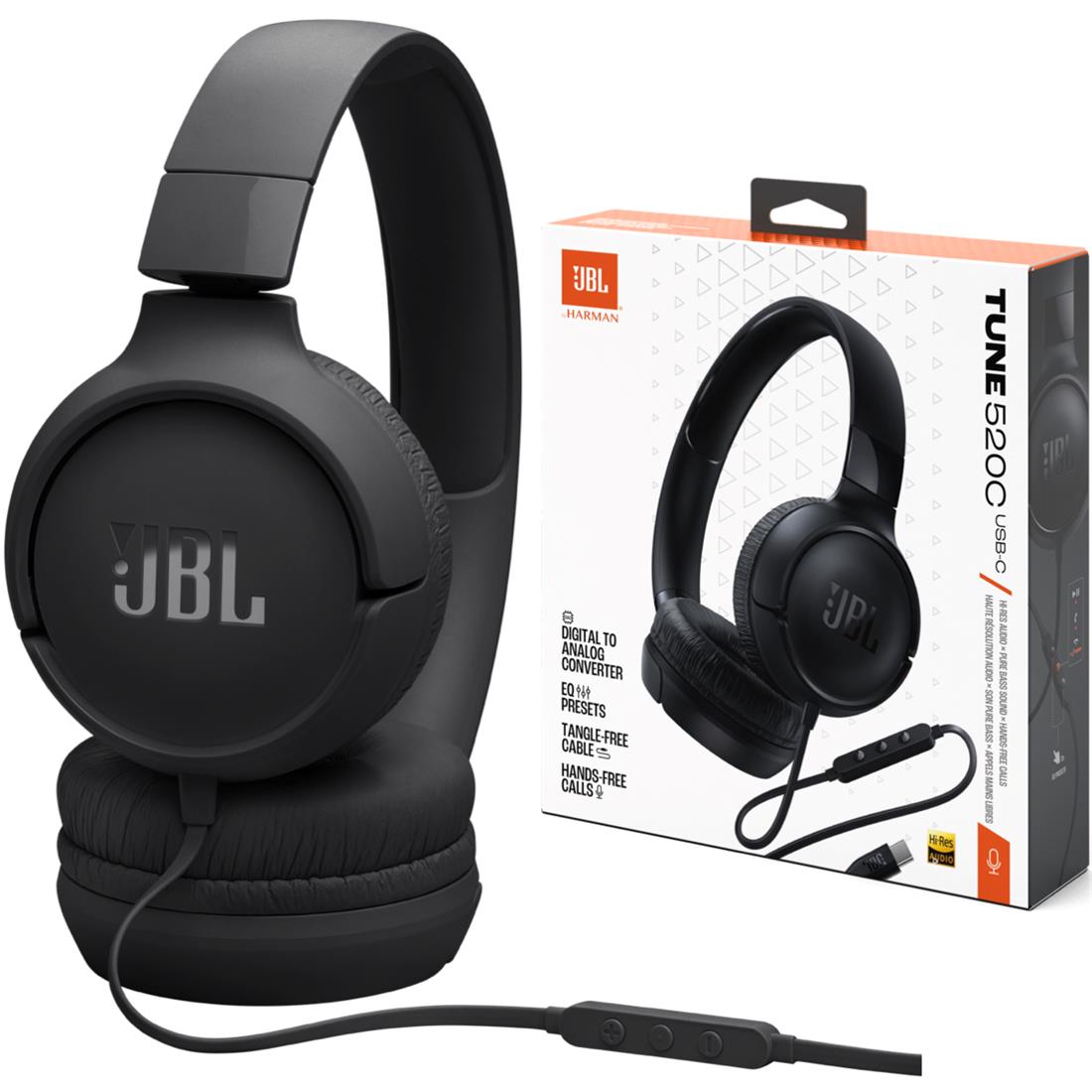 - Los auriculares con cable JBL Tune 520C USB-C son la combinación perfecta de comodidad y calidad de sonido. Con un peso ligero y un diseño ergonómico, son ideales para usar durante todo el día. Su potente sonido JBL Pure Bass y la compatibilidad con audio de alta resolución aseguran que tu música suene siempre en su mejor forma. Conéctalos a cualquier dispositivo USB-C y disfruta de un control total sobre tu experiencia musical, ya sea en la oficina, en casa o mientras te desplazas.