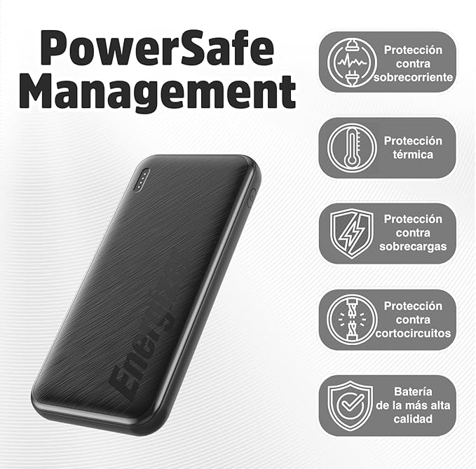 - PowerSafe Management garantiza contra cortocircuitos, sobrecorriente, sobrecarga y sobredescarga para tu banco de energía y dispositivos.