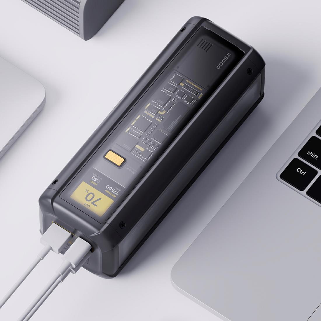 • Este powerbank está equipado con una pantalla a color inteligente que proporciona información crucial al instante. Visualiza de manera clara y precisa la energía restante y la velocidad de carga, mejorando así la experiencia de uso y facilitando un manejo intuitivo y eficiente.