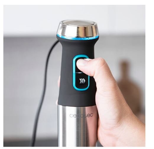 - Batidora de mano con 1200 W de potencia máxima, perfecta para conseguir mezclas finas y homogéneas de forma rápida y sin esfuerzos.