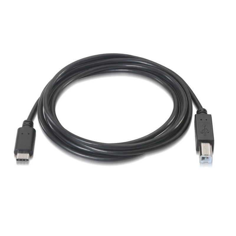 - Cable USB 2.0 con conector tipo USB-C macho en un extremo y tipo B macho en el otro de AISENS®. Ideal para conectar su dispositivo USB-B a un dispositivo USB-C (ejemplo para conectar una impresora a un ordenador con puerto USB-C). Color negro y longitud de 2 metros.
