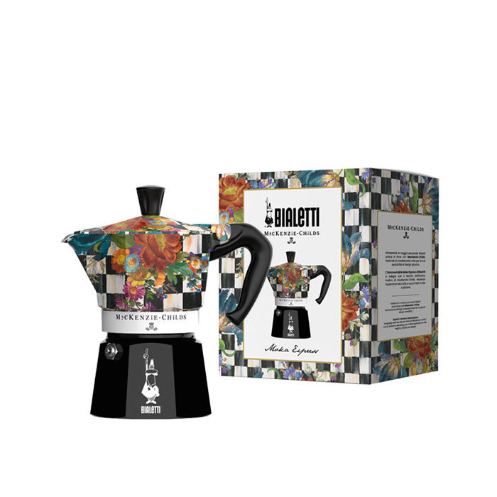 - Mejore la experiencia del espresso con Bialetti y MacKenzie-Childs, la empresa de muebles para el hogar conocida por su sensibilidad de diseño lúdico.