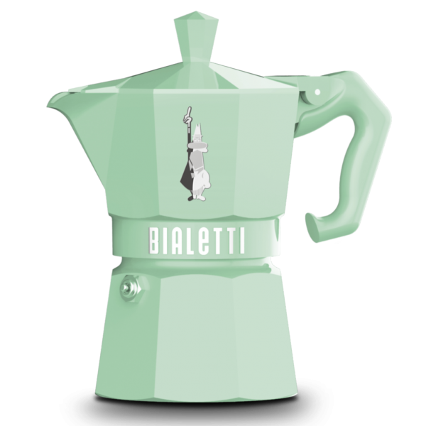 Colores superbrillantes, junta de silicona y revestimiento protector interno de la caldera. El pomo en forma de diamante y el tirador recuerdan a la Moka de los años 60, con un toque moderno y elegante.
