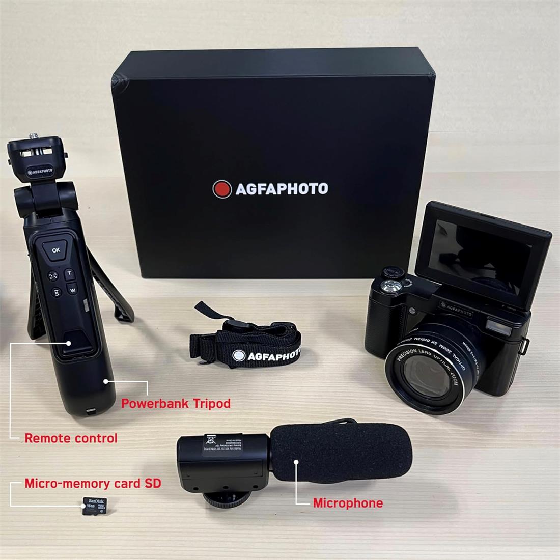 Cámara AgfaPhoto VLG-4K (Kit: Cámara 5x Zoom, Trípode Powerbank, Mando y Micrófono)
