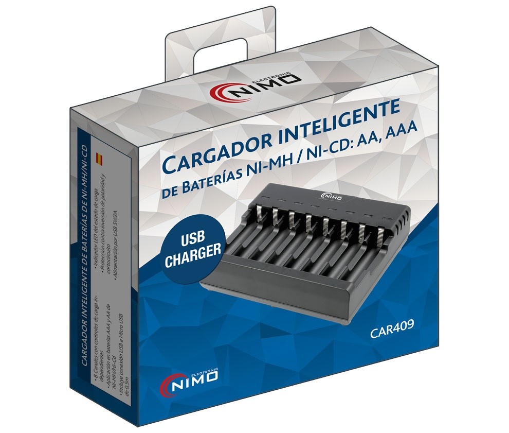 - Cargador de baterías NI-MH/Ni-Cd de 8 canales.