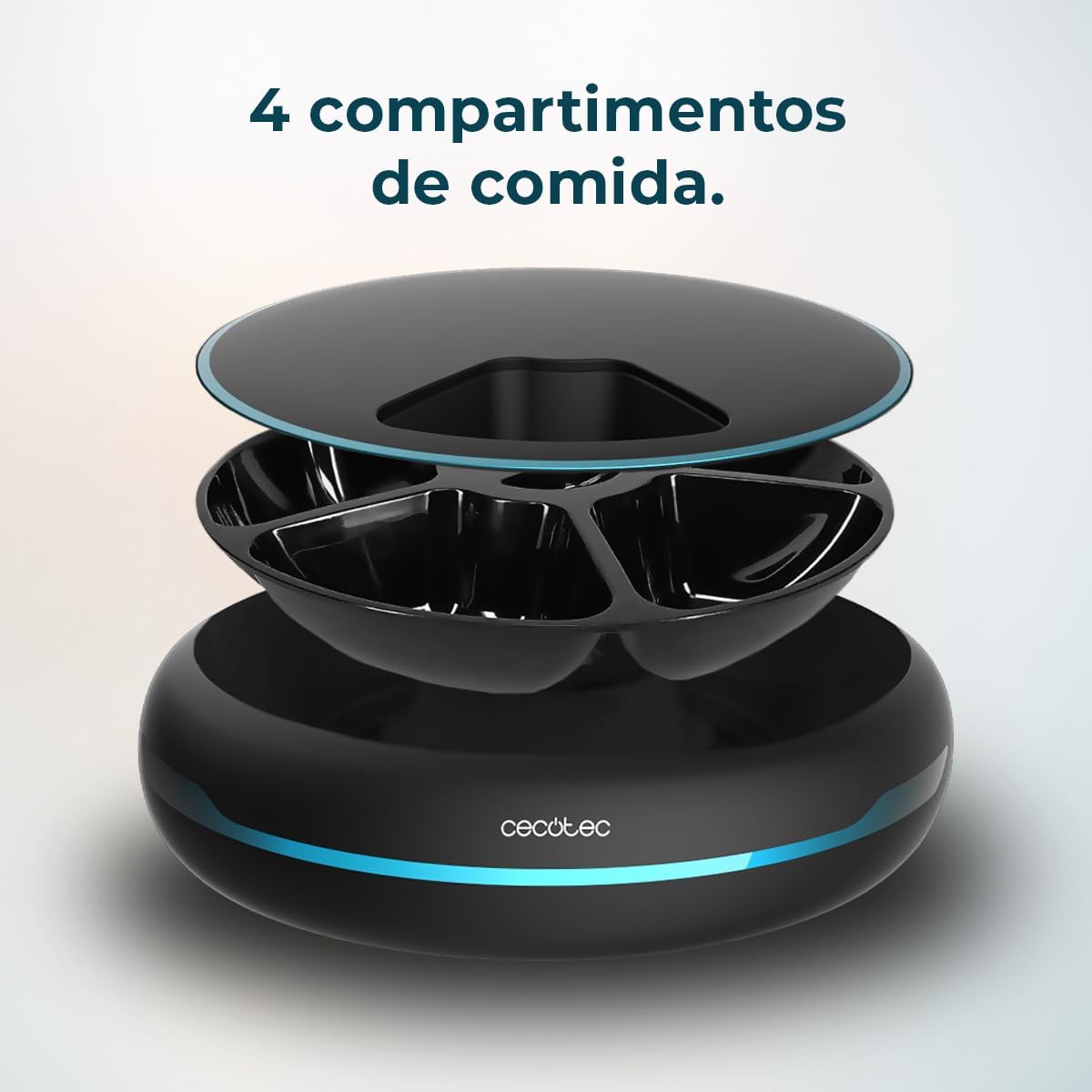 - 4 compartimentos: el dispensador te permitirá poner la comida que prefieras en cada compartimento.