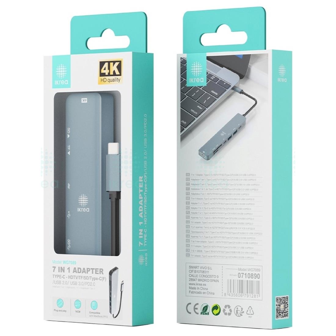 Dock USB-C a HDMI, Lector Tarjeta, x2 USB Ikrea WG7089