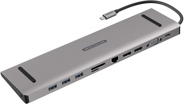 - Sitecom CN-389 USB-C Multiport Pro Dock | USB-C a 3X USB 3.1 + 2X HDMI + 1x VGA + 1x Gigabit LAN + 1x Lector de Tarjetas SD/MICR-SD + 1x Puerto de Audio de 3,5 mm + 1x USB-C Power Delivery 100W
