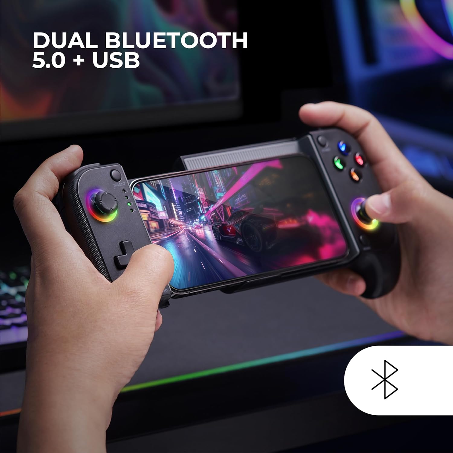 • Juega sin interrupción gracias a la conectividad Bluetooth 5.0 del gamepad RGB MGPX, con hasta 8 horas de uso continuo con una sola carga y la opción de conexión USB-C para consolas y PC