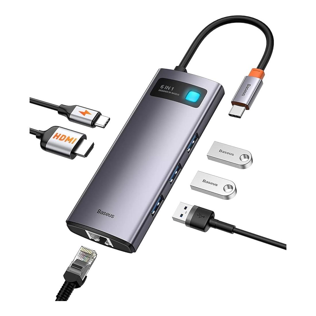 - El Baseus CAHUB-CW0G es un hub de 6 puertos que permite conectar múltiples dispositivos a un solo puerto USB-C. Este producto es ideal para usuarios que necesitan ampliar la conectividad de sus dispositivos portátiles compatible con ordenadores Apple MacBook Pro y MacBook Air.