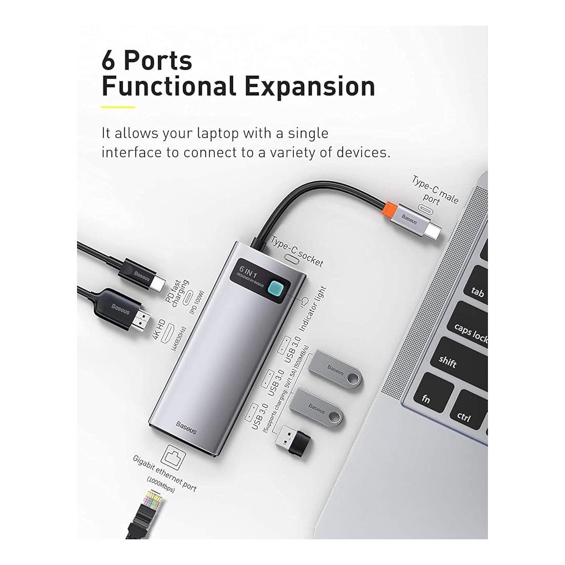 Hub 6-1 Baseus CAHUB-CW0G USB-C to 3x USB 3.0 + HDMI + USB-C PD + RJ45