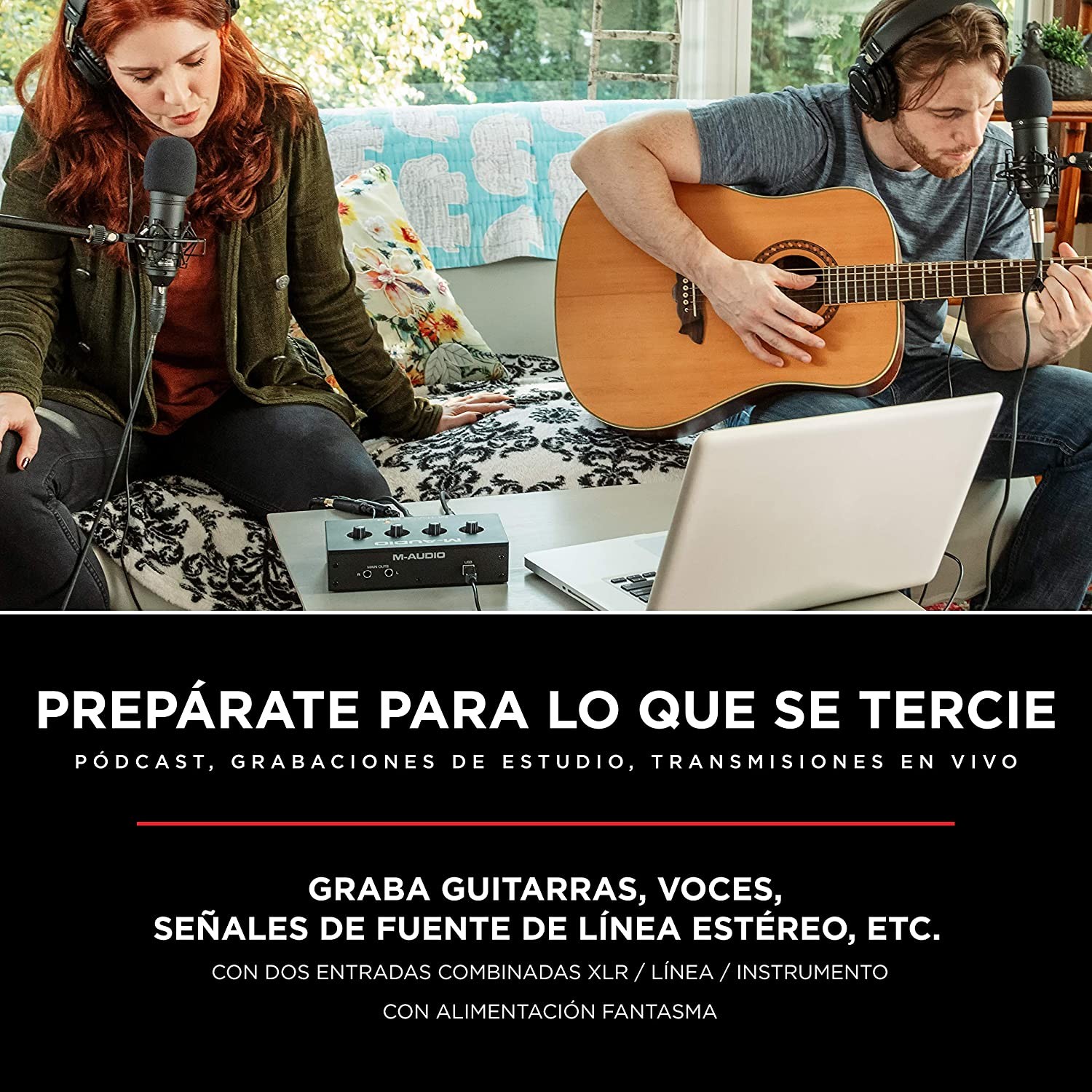 •  Interfaz de audio USB, tarjeta de sonido para grabaciones, transmisiones y pódcasts con entradas XLR, línea y DI, paquete de software…