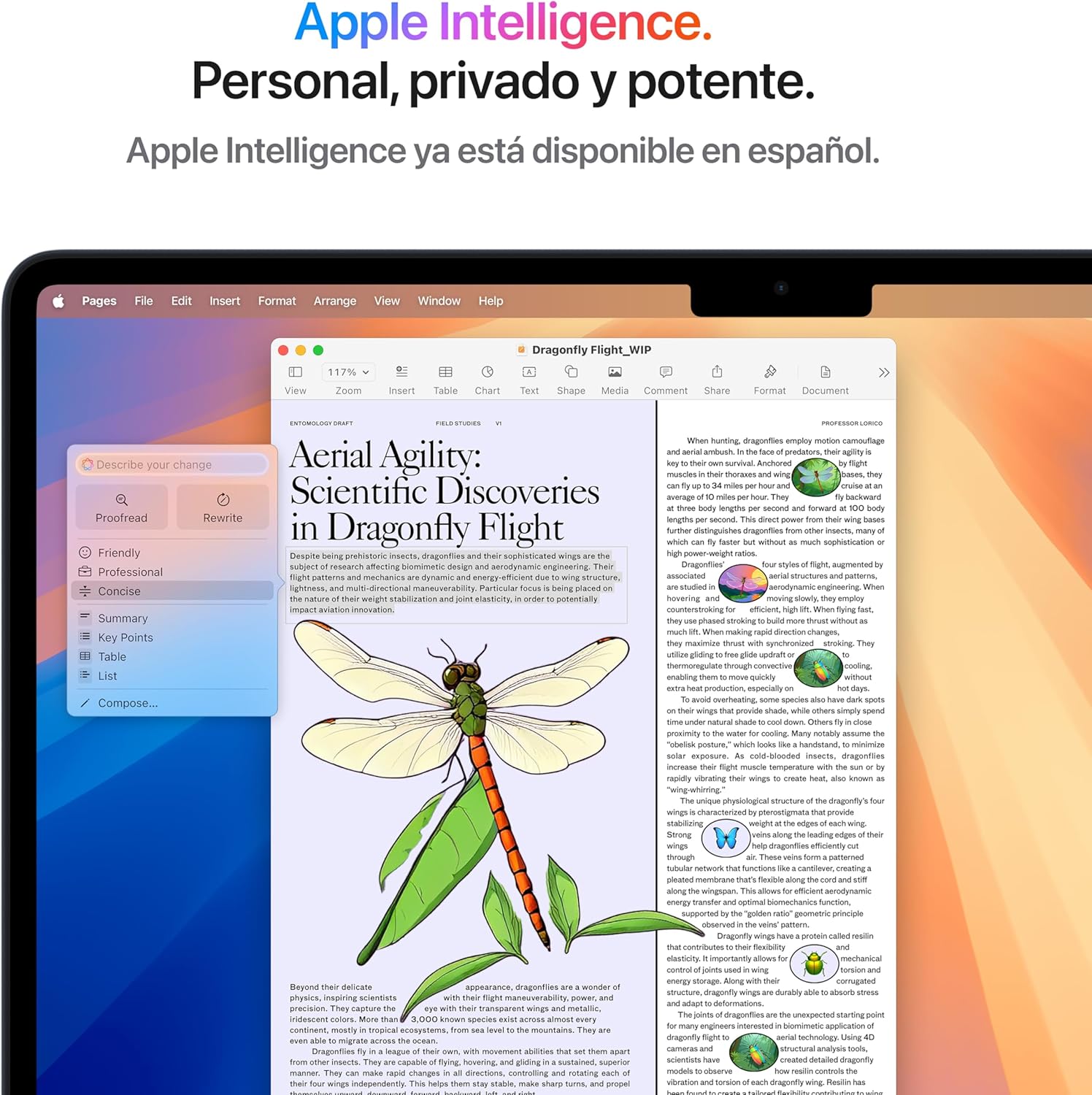 Peso: 1,24 kg. - Sistema operativo macOS Sequoia con Apple Intelligence