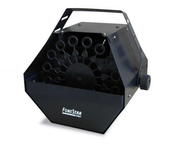 - Máquina generadora de burbujas, 50 W de potencia. 0’75 litros de capacidad para líquido de burbujas. Producción de burbujas constante.