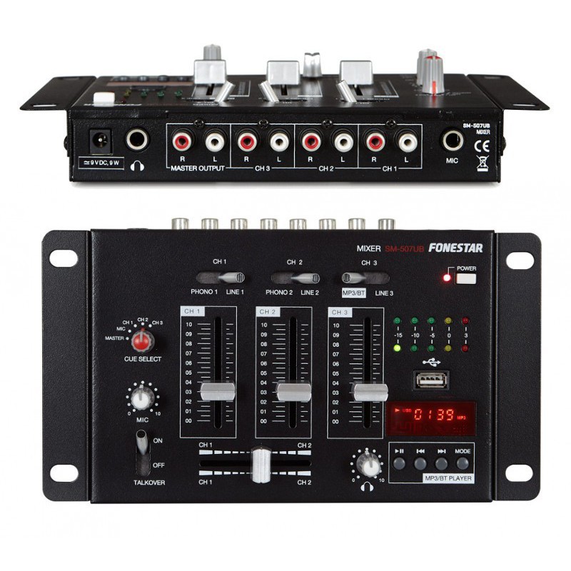 Mezclador 3 canales + Micro con Reproductor USB Fonestar