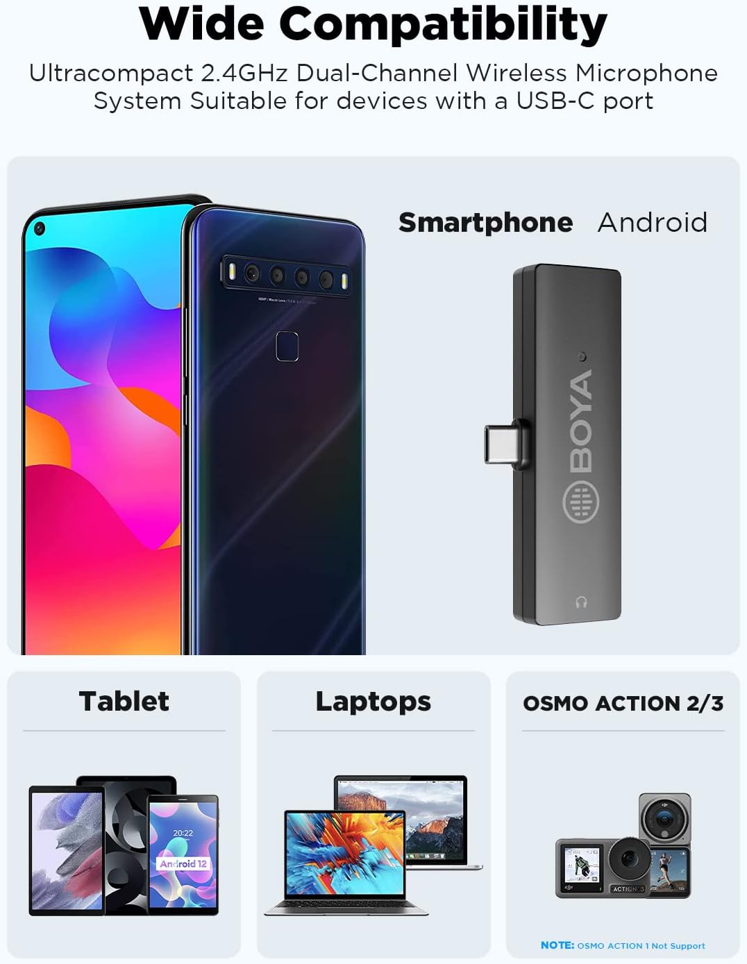 - Diseño para USB-C: micrófono inalámbrico de solapa BY-XM6-K5/K6 con un adaptador USB-C compatible con dispositivos Samsung/Pixel/LG/LG/LLaptop/DJI OSM 2/3th con puerto USB-C. Perfecto para YouTube Tiktok Live Steaming, vlog, videoconferencia, realización de películas de entrevistas, podcast.
