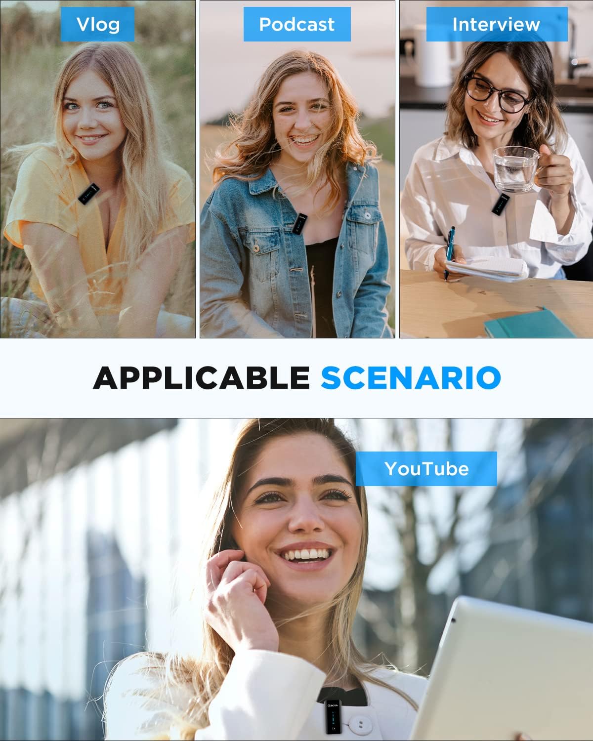 - Amplia compatibilidad: teléfonos inteligentes USB-C (los dispositivos USB-C necesitan un adaptador TRRS a USB-C de 0.138 in), cámaras DSLR, videocámaras de consumo, laptop, etc. Ideal para youtube tiktok vlog, videoconferencia, entrevista cinematográfica podcast, etc.