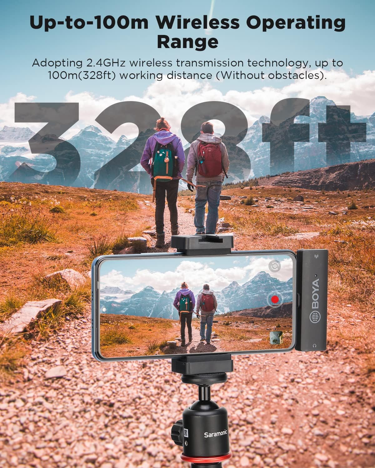 - Transmisión de señal estable: el micrófono inalámbrico de solapa BOYA tiene antena PIFA integrada, adopta el exclusivo esquema de modulación de frecuencia adaptativa inalámbrica ISM de 2.4 GHz, y la distancia de transmisión sin barreras puede alcanzar los 328 pies. Le proporciona una transmisión de señal de audio estable y clara. (Por favor, no le des la espalda al receptor o afectará la transmisión de la señal)