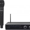 - Formado por un receptor doble y dos transmisores, un micrófono de mano y uno de petaca. El micrófono inalámbrico de mano tiene cápsula dinámica unidireccional que maximiza la captación directa de la voz y rechazo de ruidos y sonidos indirectos. Y transmisor de petaca con micrófono de solapa con eficiente captación de la voz.