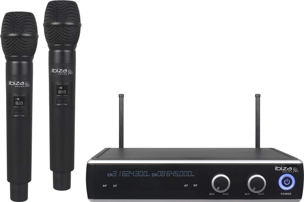 - El Ibiza DR20UHF-HH es un sistema de micrófono inalámbrico profesional con dos transmisores. El sistema inalámbrico de muy alta calidad garantiza una alta estabilidad y un amplio rango de recepción gracias a la tecnología inalámbrica UHF.