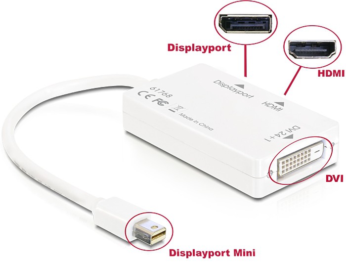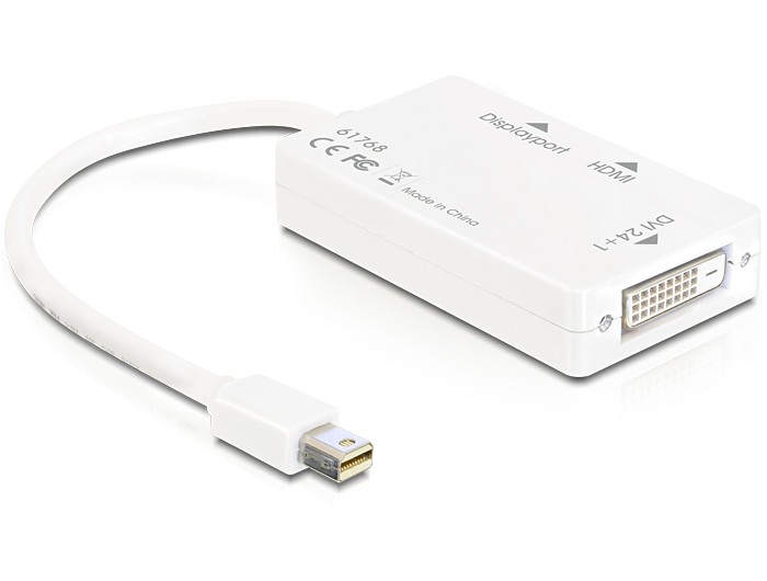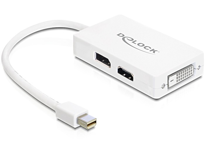 - Este adaptador mini-Displayport de Delock le permite ampliar el sistema con una interfaz HDMI, Displayport y DVI interface. Por tanto, puede conectar diferentes dispositivos, como un televisor, un proyector, un monitor de PC. Mediante la conexión de un monitor adicional, también puede reflejar o extender la pantalla.