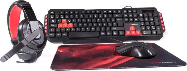 Pack 4 en 1 Mars Gaming MRCP1 Teclado, Cascos, Ratón 2800DPI y Alfombrilla 35x25cm