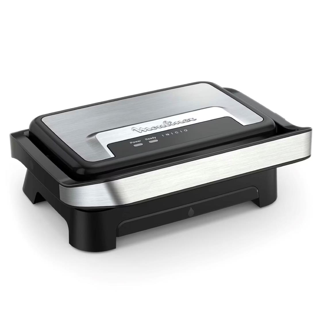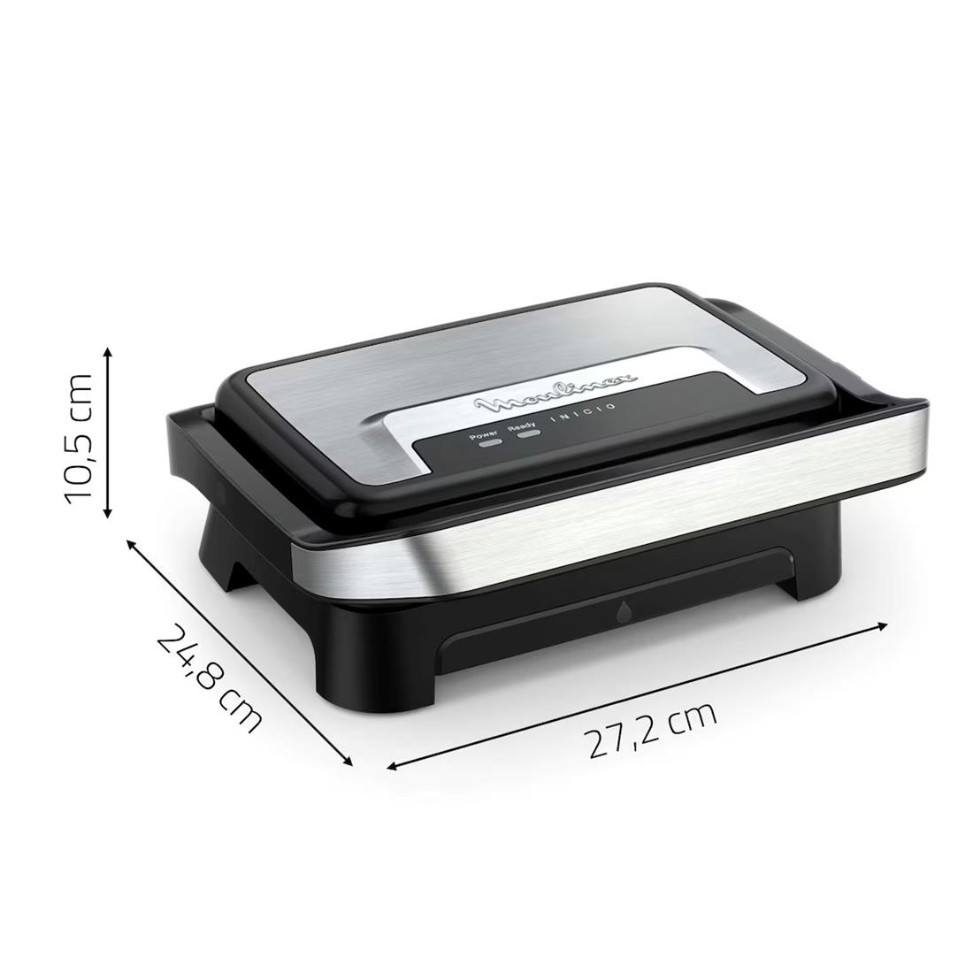 - Descubre la versatilidad y el estilo de la Moulinex GI270D, una parrilla eléctrica de contacto que combina un diseño moderno en negro y acero inoxidable con funcionalidades que facilitan la cocción de tus platillos favoritos. Su factor de forma rectangular ofrece una superficie de cocción de 230 x 145 mm, ideal para preparar deliciosas comidas en poco tiempo.