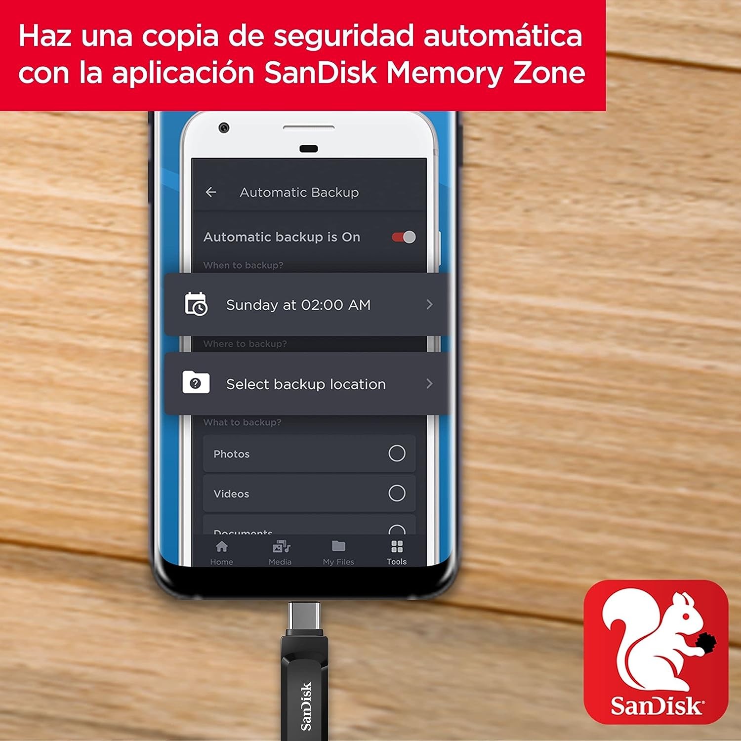 - Haz copias de seguridad de las fotos automáticamente utilizando la aplicación sandisk memory zone