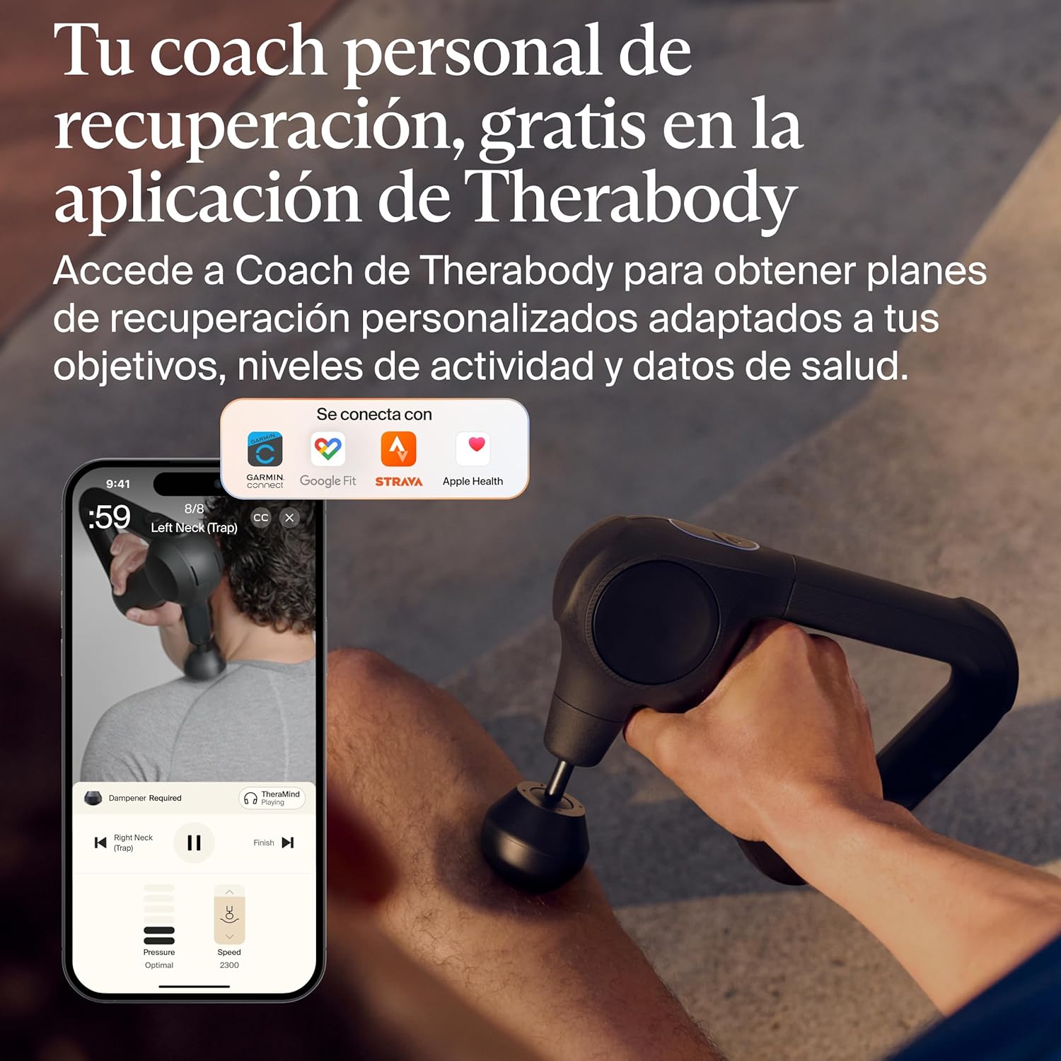 - Control de aplicación inteligente y recomendaciones de recuperación personalizadas: Bluetooth para control de aplicaciones y acceso a una biblioteca de rutinas guiadas en la aplicación Therabody, incluyendo programas para masaje de espalda y cuello técnico. Utiliza Coach by Therabody, gratis en la aplicación, para acceder a planes de recuperación personalizados basados en tus objetivos y datos de actividad.