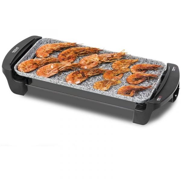 Plancha de asar eléctrica de gran potencia con revestimiento de piedra RockStone, termostato regulable y apta para lavavajillas. 40×20 cm. Rock&Water 2000.