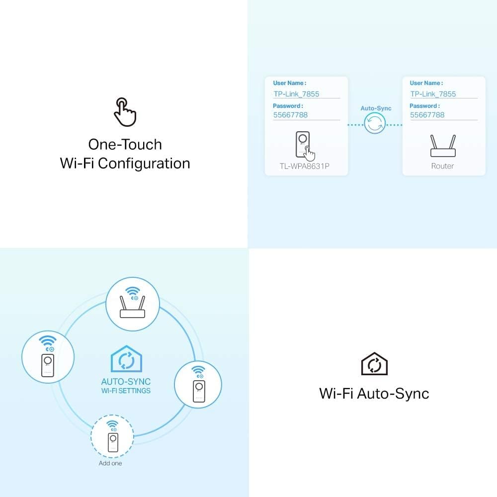 - Auto Sincronización – Añade extensores adicionales a tu red powerline mediante el botón pair, sincronización uniforme de los ajustes para todos los dispositivos de red como por ejemplo SSID, contraseña, Programación Wi-Fi y Programación de LED