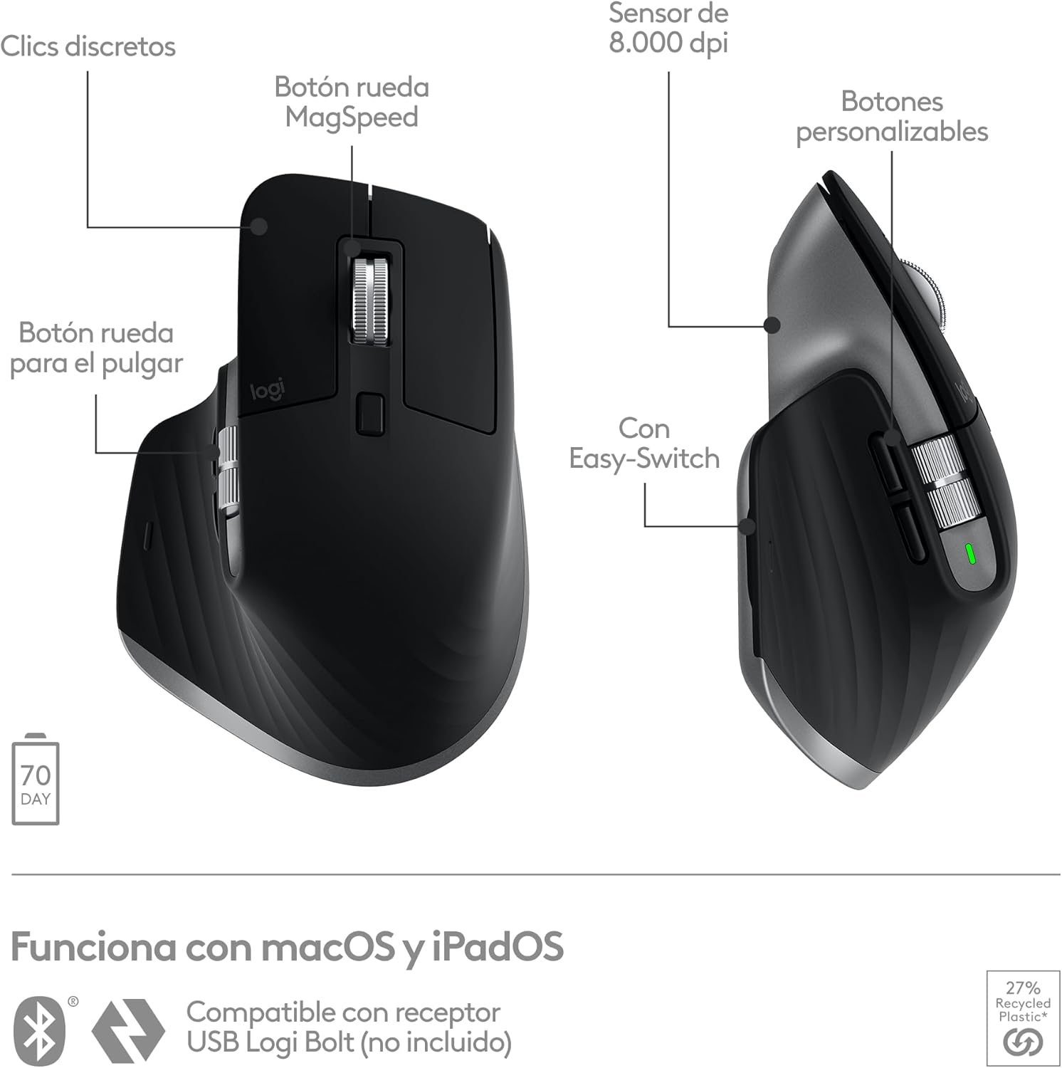 - Reinventado para Mac: el ratón de gran rendimiento MX Master 3S para Mac está adaptado a macOS y es compatible con iPadOS (1)