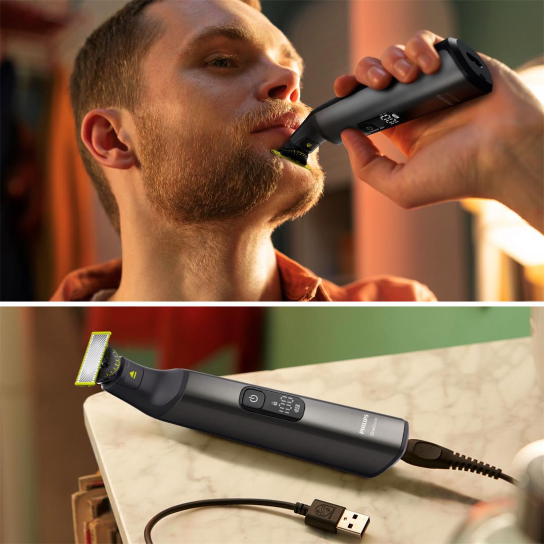 - El Philips OneBlade Pro 360 combina la tecnología de corte de precisión con la comodidad de un diseño ergonómico. Su longitud ajustable te permite personalizar el estilo de tu vello facial y corporal, mientras que su pantalla LED te proporciona información clara sobre el nivel de carga de la batería.