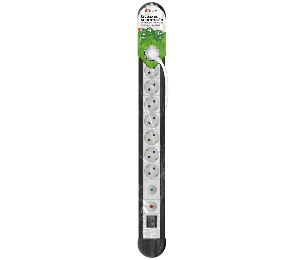 Regleta con Protección Sobrecarga y Sobretensión 9 Tomas