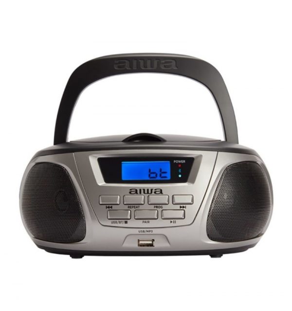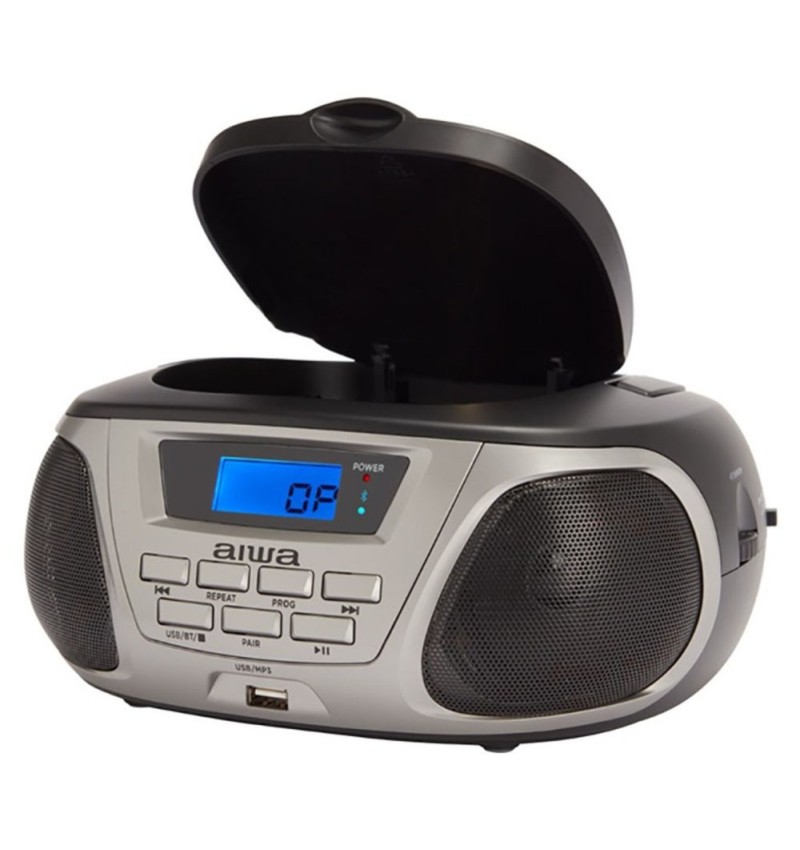 Reproductor de CD Portátil, Radio FM, Bluetooth, USB, Aiwa BBTU-300BK Plata