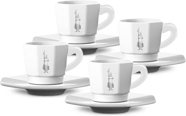 • Su original diseño recuerda la forma de la icónica cafetera Moka Express: el juego de 4 tazas es perfecto para compartir las pausas del café con quien quieras y llevar todo el mundo Bialetti a tu mesa.