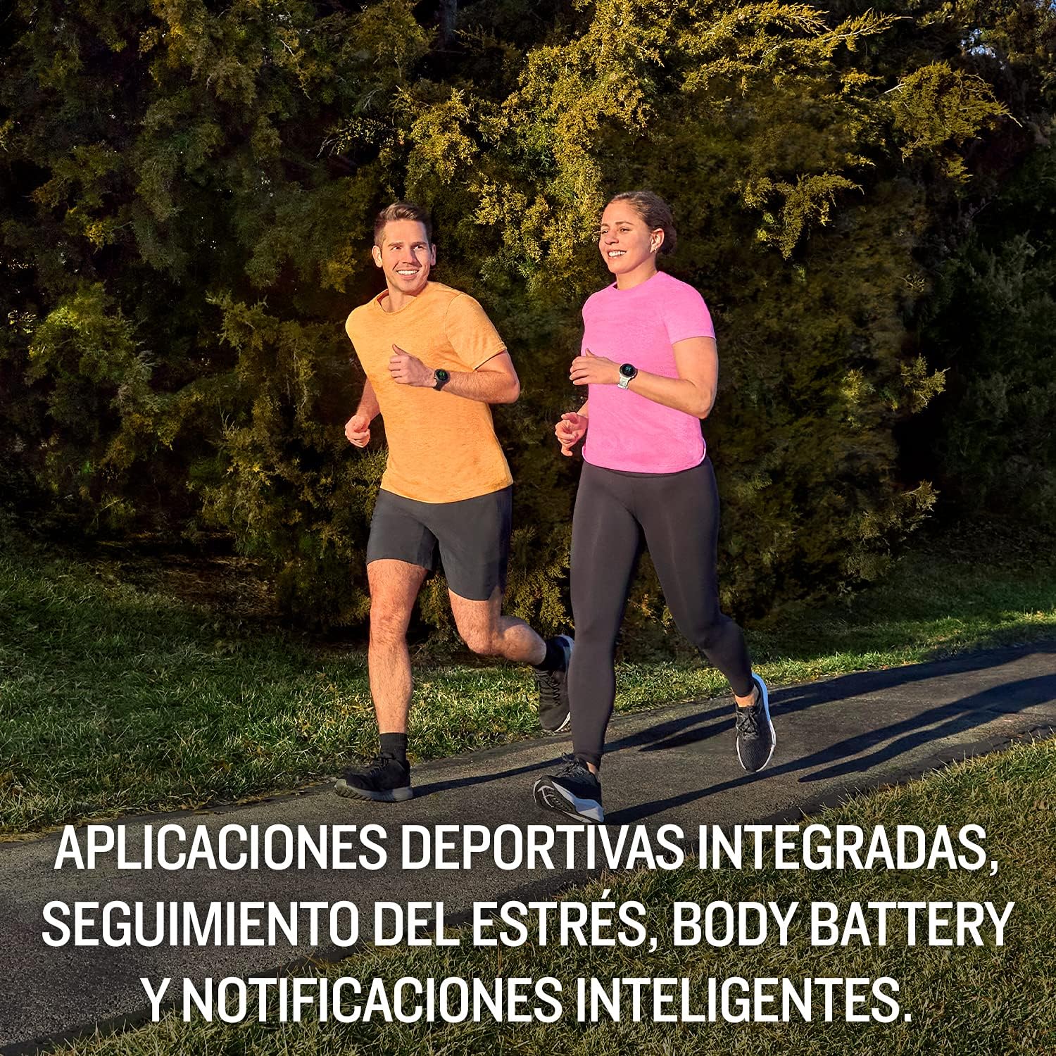 • Incluye monitorización de frecuencia cardíaca en la muñeca, seguimiento de estrés, edad fisiológica, respiraciones, hidratación, Body Battery y mucho más para el control de tu salud.