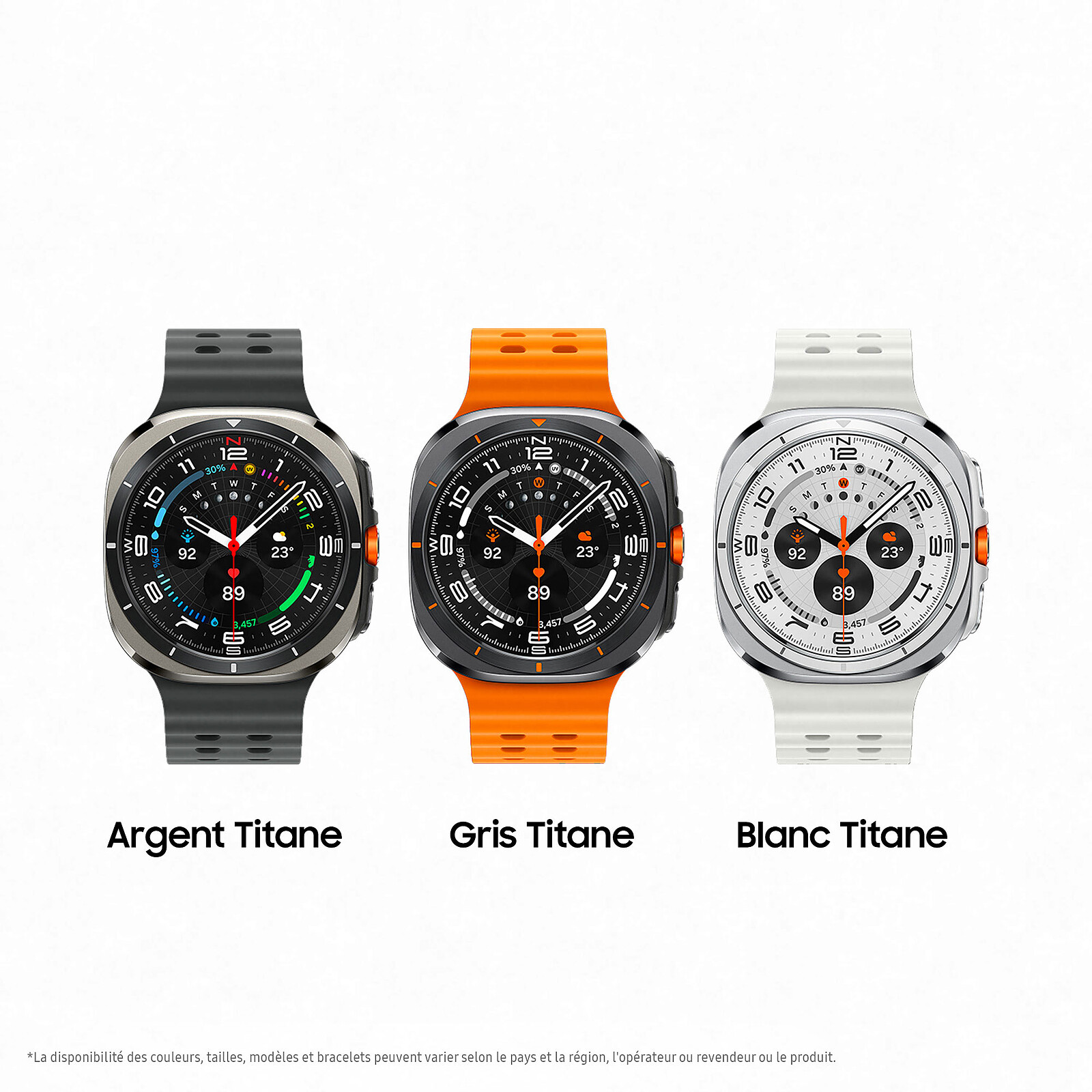 - Funciones de deporte y bienestar : Número de pasos, calorías quemadas, horas en movimiento, pisos subidos, inicio de un ejercicio, análisis de zancada, transpiración (carrera y ciclismo), Vo2 máx, medición continua de la frecuencia cardiaca, electrocardiogramas, etc.frecuencia cardiaca, electrocardiograma, medición de la tensión arterial, SpO2 (a demanda y durante el sueño, análisis de la composición corporal en 15s, análisis y monitorización avanzados del sueño detección de ronquidos (mediante smartphone), detección de apnea del sueño, control del estrés, ejercicios de relajación, control nutricional (cafeína, agua, etc.), detección de caídas, ciclo del sueño, etc.), detección de caídas, ciclo menstrual avanzado (con análisis de la temperatura corporal y análisis de la fertilidad), detección de más de 90 pistas de ejercicios