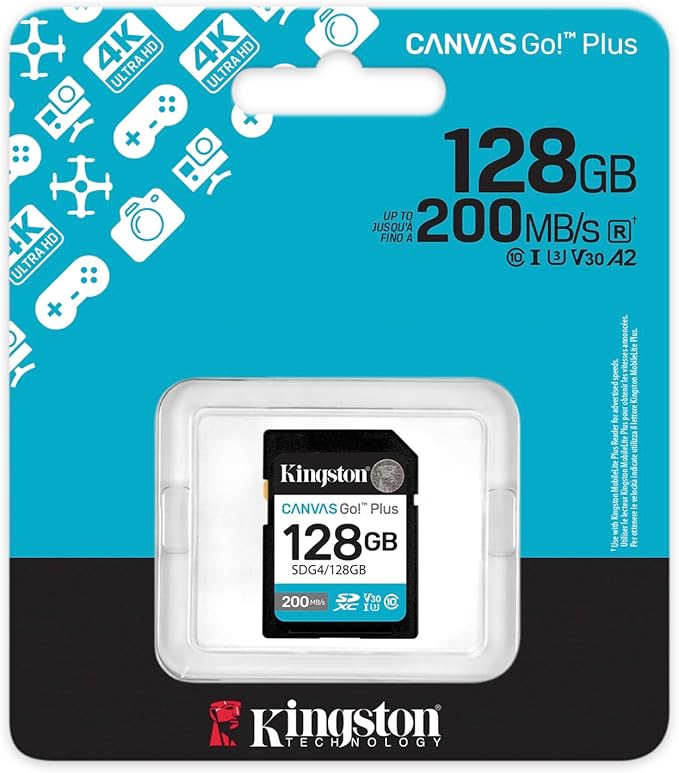 Tarjeta de Memoria Kingston Canvas Go Plus SDXC Gen4 200MB/s C10 UHS-I U3 V30 128GB