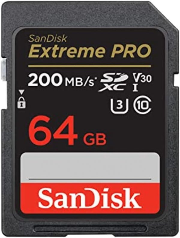 Tarjeta de memoria SanDisk 64GB Extreme PRO SDXC hasta 200MB/s UHS-I Clase 10 U3 V30