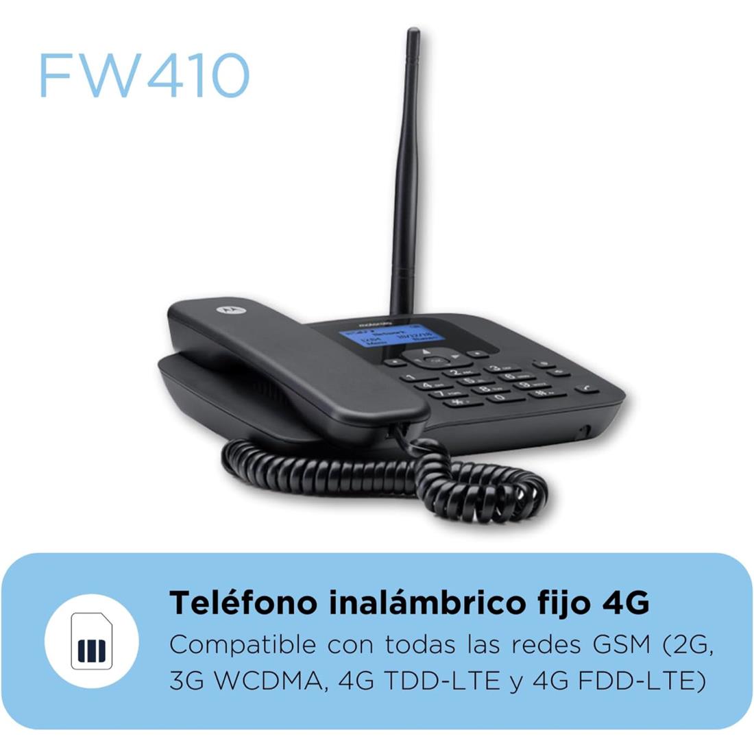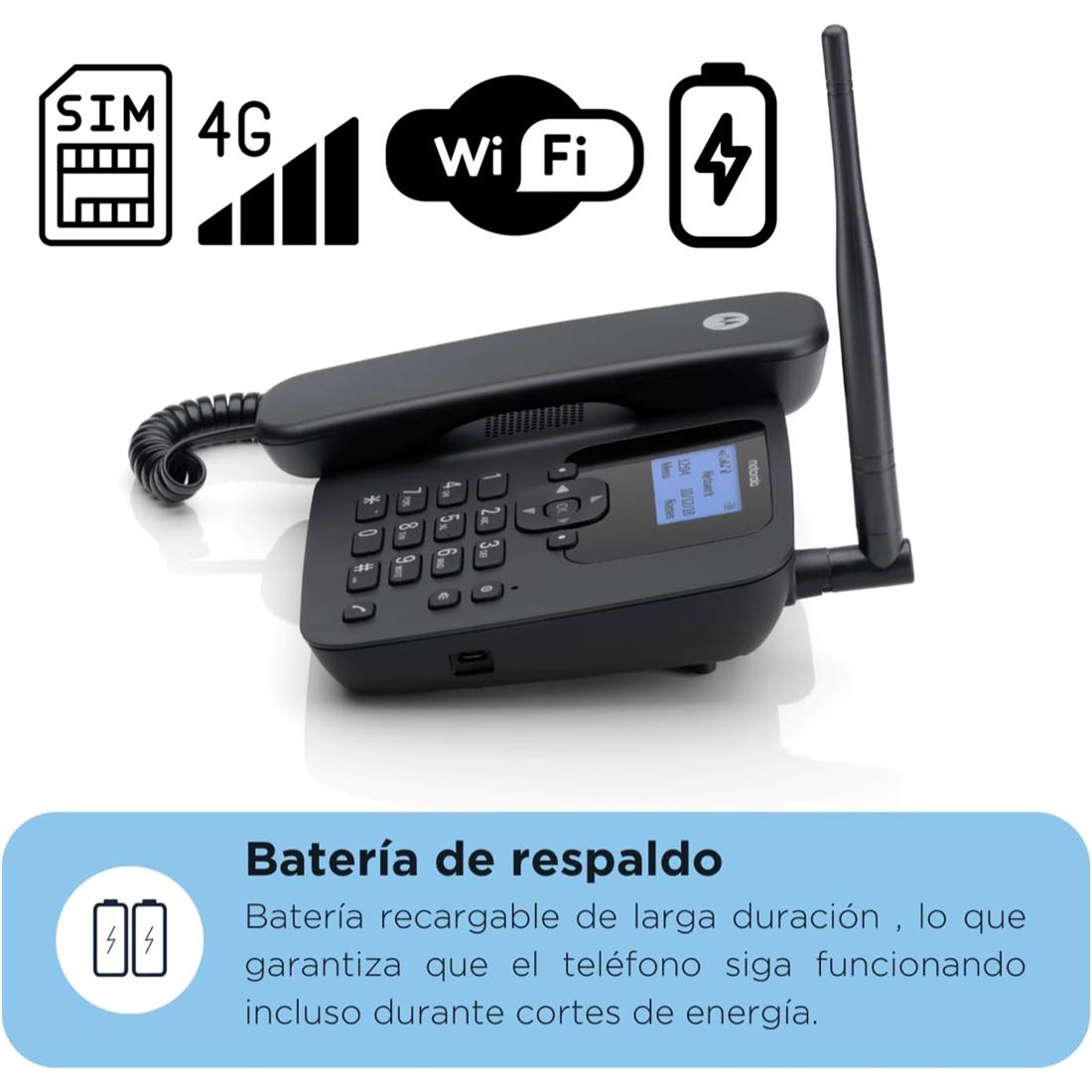 Teléfono Fijo Motorola FW410L con Tarjeta Sim GSM 4G Negro